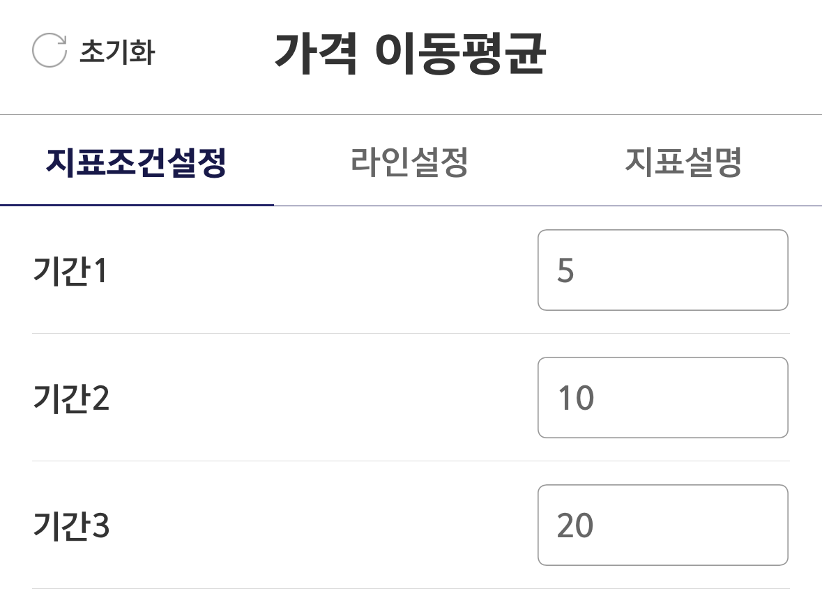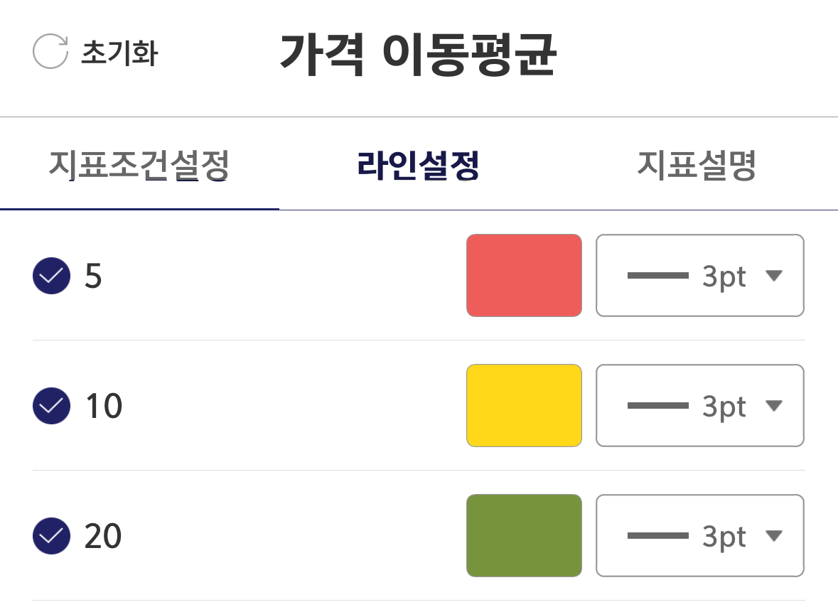 이동평균선 표시 설정